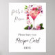 Fleurs de jardin élégantes avec un verre de champagne, baies et texte "Pétales et Prosecco" Thème floral pour la douche de mariage de la mariée Affiche de demande de recette en couleurs lilas, lavande, rose blush, pêche, abricot et verdure.
