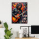 Ce tableau est un portrait audacieux et texturé d'un musicien de rock dans une veste et un jean en denim, intensément concentré sur jouer une guitare électrique. L'oeuvre présente un style impasto lourd, avec des coups de pinceau épais et énergiques qui donnent à la pièce une sensation dynamique et brute. L'arrière - plan est un mélange abstrait de rouge, de violet et de noir avec le mot "ROCK" affiché en évidence, mettant l'accent sur le thème de la musique.