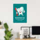 Une affiche avec l'illustration d'une grande dent blanche de style dessin animé souriant joyeusement en tenant une brosse à dents rouge et en donnant le signe du pouce vers le haut.