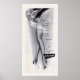 Une affiche publicitaire française pour les bas. Il s'agit d'un vrai cascadeur en gris et noir montrant de magnifiques jambes longues sous une jupe courte avec des chaussures à talons très hauts.