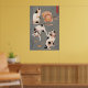 Cette belle affiche présente l'oeuvre de l'artiste Ukiyo-e Utagawa Kuniyoshi. Il comporte quatre chats dans des poses typiques de félin.