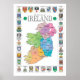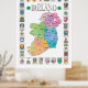COMTÉS D'IRLANDE Carte colorée de l'Irlande bordée par les armoiries des 32 comtés.