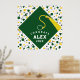 Affiche de remise de diplômes créative pour la grande fête mettant en vedette un casquette vert avec un goût d'or sur arrière - plan confetti. Pour personnaliser, modifier le texte ajouter son nom et son année de classe supérieure.