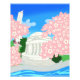 Image symbolique du Jefferson Memorial et du Washington Monument parmi les fleurs de cerisiers. Illustration ©2021 Michael C. Paul https://mikepaulart.com