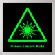 Les lasers verts - en vert vif avec un symbole d'avertissement laser sur une affiche noire.