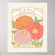 Un paquet de graines vintage-moderne avec les fleurs heureuses de la fleur de zinnia, dans des tons chauds d'orange, de corail et de rose. Une tapisserie joyeuse pour votre maison, ou un cadeau de charme pour le jardinier dans votre vie!