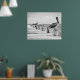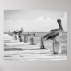 Poster est montré avec une photo en noir et blanc d'un quai rustique avec des pélicans. Customisez cet objet ou achetez tel quel. Image stock