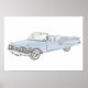 Poster Dessin de crayon convertible bleu 1960 Impala Chev