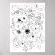 Poster dessin de ligne d'arrangement de fleurs