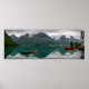 Impression d'une affiche d'un paysage avec deux vieux bateaux à rames dans un lac avec le reflet des montagnes dans l'eau calme à Hjelle Hotel, Hjelle, Stryn, Sogn og Fjordane, Norvège. C'est une photo panoramique, parfaite pour décorer son mur.
