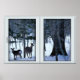 Poster Deux cerfs dans la fenêtre d'hiver avec une affich