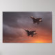 L'armée de l'air américaine McDonnell Douglas, deux F-15E de l'armée de l'air américaine qui volent à basse altitude, frappent des aigles au coucher du soleil. Avion de chasse volant à basse vitesse, avec un beau coucher de soleil orange. Situé près de RAF Lakenheath dans le Suffolk England