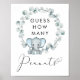 Sympa signe de jeu pour votre bébé garçon douche avec "Devis Combien d'arachides" écrit une typographie simple et un script élégant avec un coeur swash et une aquarelle bleu pastel d'un éléphant bébé dans une couronne d'eucalyptus. Placez un bocal rempli d'arachides en dessous et demandez à vos invités de deviner combien d'arachides sont dans le bocal. Le gagnant sera l'invité qui se rapproche le plus sans passer par là. Les cartes de devis correspondantes sont disponibles dans notre collection Elephant Eucalyptus Baby Boy Shower Collection.