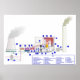Le charbon est transporté (14) d'une cheminée et d'un sol externe à une poudre très fine par de grandes sphères métalliques dans le moulin à combustible pulvérisé (16). Là, il est mélangé avec de l'air préchauffé (24) conduit par le ventilateur de tirant d'eau forcé (20). Le mélange air-combustible chaud est forcé à haute pression dans la chaudière où il s'enflamme rapidement. L'eau d'une grande pureté coule verticalement sur les parois de la chaudière, où elle se transforme en vapeur, et est transmise au tambour de la chaudière (17), où la vapeur est séparée de toute eau résiduelle. La vapeur passe à travers un collecteur dans le toit du tambour dans le superchauffeur pendentif (19) où sa température et sa pression augmentent rapidement à environ 200 bar et 570°C, suffisant pour faire briller les parois du tube d'un rouge ennuyeux. La vapeur est acheminée vers la turbine haute pression (11), la première d'un processus de turbine à trois étages. Une soupape de gouvernail à vapeur (10) permet à la fois de contrôler manuellement la turbine et de fixer automatiquement le point suivant. La vapeur est épuisée par la turbine haute pression et réduite à la fois en pression et en température, est retournée au réchauffeur de chaudière (21). La vapeur réchauffée est ensuite transmise à la turbine à pression intermédiaire (9), puis directement à l'ensemble à basse pression (6). La vapeur, maintenant légèrement au-dessus de son point d'ébullition, est introduite en contact thermique avec de l'eau froide dans le condensateur (8), où elle se condense rapidement dans l'eau, créant un quasi-vide à l'intérieur de la poitrine du condensateur. L'eau condensée est ensuite passée par une pompe à alimentation (7) par un déaérateur (12), et préréchauffée, d'abord dans un chauffe-alimentation (13) alimenté par de la vapeur tirée de l'ensemble à haute pression, puis dans les économiseurs (23), avant d'être retournée au tambour de la chaudière. L'eau du condensateur est vaporisée à l'intérieur d'une tour de refroidissement (1), créant un panache très visible, avant d'être réinjectée dans le cycle d'eau de refroidissement. Les trois ensembles de turbines sont couplés sur le même arbre que le générateur électrique (5) qui génère une tension de niveau intermédiaire (généralement 20-25 kV). Le transformateur de l'unité (4) l'intensifie à une tension plus adaptée à la transmission (généralement 250-500 kV) et l'envoie sur le système de transmission (3). Le gaz d'échappement de la chaudière est tiré par le ventilateur de pression induit (26) par un précipitateur électrostatique (25) et est ensuite évacué par la cheminée (27). Les droits de reproduction d'images se trouvent dans le lien situé au bas de cette description. Inscrivez-vous gratuitement à M. Rebates et économisez 12% sur toute commande zazzle en plus d'une prime d'inscription de 5,00 $ Tous droits réservés; sans préjudice, recours ou avis (U.C.C. 1-308) Droits de reproduction d'image : http://commons.wikimedia.org/wiki/File:PowerStation3.svg charbon "combustible fossile" "plante d'énergie" "plante d'énergie du charbon" "centrale thermique" "centrale thermique" "centrale thermique" "centrale thermique à charbon" "centrale thermique à charbon" "centrale électrique à combustible fossile" "diagramme plante" diagramme "diagramme de centrale électrique" "diagramme plante de charbon" "schéma plante de charbon" "énergie de charbon"