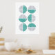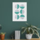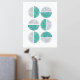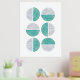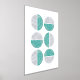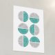 Cet imprimé d'art moderne comporte une série de cercles divisés en deux, et divisés en lignes courbes et droites. La moitié solide de chaque cercle est une couleur turquoise vibrante, tandis que l'autre moitié est pressée en feuille d'or ou d'argent. Ce design est assez polyvalent pour fonctionner avec une variété de styles de décoration, mais je pense qu'il aurait l'air génial dans un bureau ou un loft.
