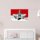 Guitare électrique blanche noire avec imprimé affiche d'ailes, avec une guitare électrique, ailes, flammes et tourbillons sur le pentagramme de musique, notes et clé trible sur arrière - plan rouge. Un grand cadeau pour un musicien, un guitariste ou un amoureux.