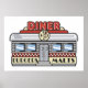 Dîner vintage rétro classique avec hamburgers et malts. Horloge sous le panneau. Rouge, argent, gris, noir, blanc, bleu clair et jaune pâle. Vous pouvez changer l'arrière - plan en n'importe quelle couleur.