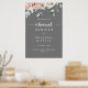Cette affiche classique rose rose grise de la répétition dîner de bienvenue est parfaite pour une répétition mariage rustique. Le design est composé d'élégantes aquarelles rose poussiéreuse et de feuillage vert, soigneusement assemblés en de beaux bouquets avec un arrière - plan gris.