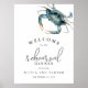 Le panneau de bienvenue parfait pour un dîner de répétition de mariage le long de la côte, ce design présente un crabe bleu dans le coin supérieur dans des aquarelles vibrantes. L'association de texte est moderne avec une élégance décontractée qui est à la fois de bon goût et hospitalière. Personnalisez le modèle de texte avec vos détails spécifiques. Ce panneau est un excellent choix pour les dîners de répétition dans les zones côtières, ou les dîners où des fruits de mer sont servis. Cette affiche est disponible en tant que produit numérique à téléchargement instantané que vous pouvez télécharger et imprimer sur le matériau d'affiche ou de panneau de votre choix.