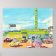 Affiche colorée, nostalgique, de l'épicerie combinée des années 1940 et du diner.