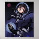 Habillées en costumes d'astronaunt, une fille et son dinosaure explorent l'espace ! Ceci est dessiné dans le style de chibi anime!