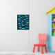 Beaucoup de dinosaures bleus, Tyrannosaurus rex, Spinosaurus, Stegosaurus, Diplodocus et Tricératops sur un arrière - plan vert turquoise foncé. Modifiez le nom pour personnaliser.