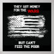Express your anti-war consciousness with this American flag poster opposing war and supporting feeding the hungy instead. Features a distressed USA flag in grunged art style with text slogan "They got money for the wars but can't feed the poor."