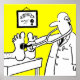 Un médecin utilise son stéthoscope sur les pieds d'un patient. Une affiche médicale amusante a un médecin de bande dessinée qui teste un patient. humour Médicale dans une affiche amusante.