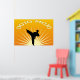 Un homme d'arts martiaux donne un coup de pied devant une affiche du lever du soleil sur cette affiche pour les chambres de Karate, Tae Kwon Do.