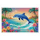 Poster Dolphin et belle île tropicale, Hibiscus