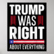 Pro Donald Trump Trump avait raison à propos de tout Réimaginez notre série d'affiches mattes respectueuses de l'environnement, conçues pour être des biens précieux pour les années à venir.
