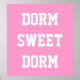 Dorm Sweet Dorm sur une affiche pour la salle de dortoir du Collège en rose chaud avec des lettres rétro blanches. Il y a des objets assortis, un oreiller de jetée, une lampe de table, etc.