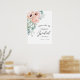 Un joli poster de bienvenue pour une fête de mariage féminin élégant avec un bouquet d'aquarelles de coquelicots, de roses, d'eucalyptus et de verdure dans des tons pastel doux rose, beige, vert et bleu-vert. Les associations de polices tendances comprennent un script manuscrit et un élégant serif. Personnalisez le modèle de texte facile à utiliser avec le nom de la future mariée et la date de l'événement.