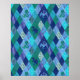 Poster Dragon à patchwork d'aquarelle en bande bleue et v