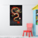 Poster Dragon chinois d'or Fucanglong sur soie noire