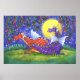 Sur cette pleine lune d'une nuit, deux dragons écoutent les sons qui les entourent.