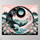 Le Yin Yin Yang est d'inspiration noire et blanche, rose pâle et vert sauge avec un soupçon de paysage montagneux turquoise et fleuri IA générée par minx267