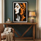 Cette conception abstraite noire et orange spectaculaire avec deux visages superposés avec un effet de fusion frappant, symbolisant la dualité et les émotions cachées. Le contraste audacieux et le style surréaliste de goutte à goutte créent une expression puissante et moderne de l'identité intérieure. Parfait pour ceux qui aiment l'art abstrait avec le sens, cet article saisit à la fois la beauté et la profondeur d'une manière audacieuse et contemporaine.