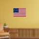 Une restitution du drapeau américain de 1776 avec 13 étoiles et rayures pour les 13 colonies originales.