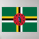 Le drapeau de la Dominique est un drapeau avec un emblème rouge circulaire avec Sisserou Parrot et 10 étoiles. Les couleurs utilisées dans le drapeau sont le rouge, le vert, le jaune, le blanc, le noir, le marron, le violet. La proportion du drapeau de la Dominique est de 1:2. Le drapeau de la Dominique a été adopté en 1990. La première utilisation de la conception actuelle du drapeau remonte à 1978. La dernière modification de la conception actuelle du drapeau dominicain remonte à 1990.