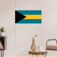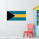 Ce dessin présente le drapeau national des Bahamas (connu officiellement sous le nom de Commonwealth des Bahamas), qui est un pays dans l'archipel de Lucayan des Antilles dans l'Atlantique. L'état archipélagique compte plus de 700 îles, cayes et îlots dans l'océan Atlantique. Les Bahamas sont situées au nord de Cuba et de l'île d'Hispaniola (Haïti et la République Dominicaine), au nord-ouest des îles Turks and Caicos, au sud-est de l'État américain de Floride et à l'est de Florida Keys. La capitale des Bahamas est Nassau sur l'île de New Providence. Les autres principales îles habitées sont Grand Bahama, Eleuthera, Cat Island, Rum Cay, Long Island, San Salvador Island, Ragged Island, Acklins, Crooked Island, Exuma, Berry Islands, Mayaguana, les îles Bimini, Great Abaco et Great Inagua. La plus grande île est Andros.