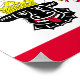 Poster avec drapeau de variante de Mecklembourg-Poméranie occidentale; design avec cinq bandes horizontales de rouge, blanc, bleu et jaune, et avec des illustrations de la tête de taureau et de l’aigle rouge