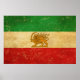 Poster avec l'ancien drapeau iranien du lion et du soleil (drapeau du Shah d'Iran) qui était en usage entre 1925 et 1979 dans un style vintage en détresse gronge vieux style design. Ce design rayé présente le vieux drapeau iranien dans un style vintage rétro. Ce drapeau d'Etat et l'enseigne de la monarchie constitutionnelle de l'Iran sous la dynastie Pahlavi est une excellente façon de vous montrer fier d'être iranien.