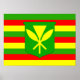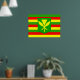Kanaka Maoli, considéré comme le drapeau original du royaume d'Hawaii. 8 bandes qui représentent les 8 îles d'Hawaï. Le centre est un bouclier vert, les armoiries de Kanaka Maoli avec les kahili, la norme royale hawaïenne.