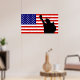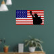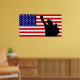 Le drapeau américain avec une silhouette de la statue de la liberté.