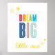 Poster DREAM BIG LITTLE ONE typographie couleurs vives
