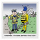 Drôle caricature de la police de la circulation britannique avec un gendarme habillé comme une guêpe parce qu'il est sur le point d'opérer un "pépin".