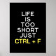 La vie est trop courte, il suffit de Ctrl + F. Couverture de devis amusante inspirée par la touche Contrôle et le bouton F sur la recherche du clavier.
