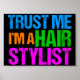Un cadeau amusant pour une esthéticienne qui vient de sortir de l'école de cosmétologie et coupe les cheveux dans un salon. humour coiffeur cool. Faites-moi confiance, je suis une Styliste de cheveux écrite dans des couleurs néons ludiques et lumineuses.