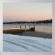 Poster du coucher de soleil sur le paysage aquatique d'hiver